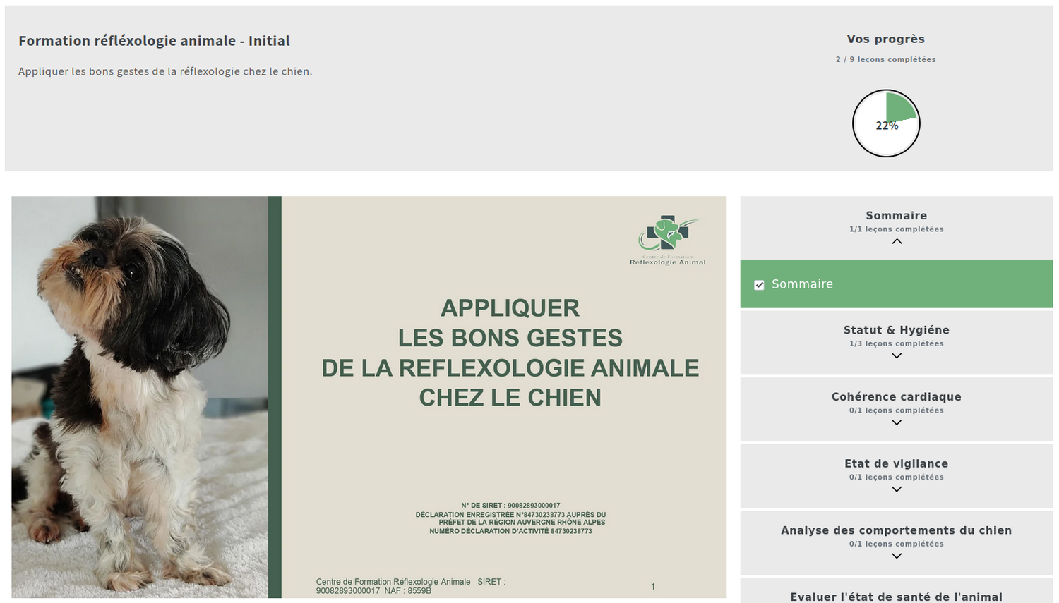 Notre interface de formation en ligne sur la réflexologie animale offre une expérience d'apprentissage interactif et efficace.